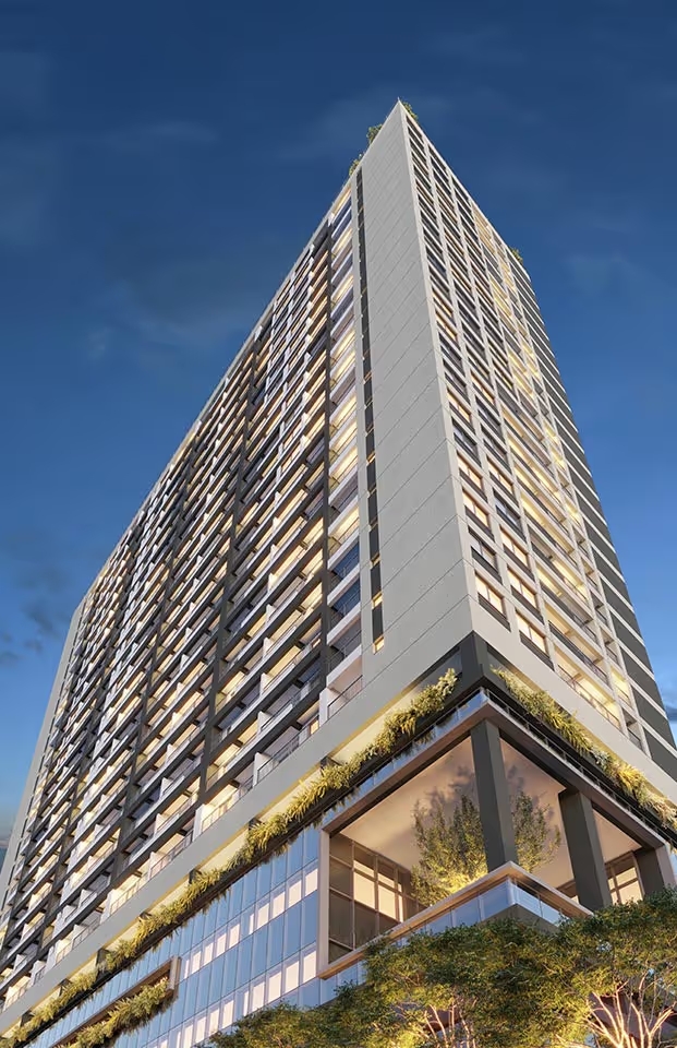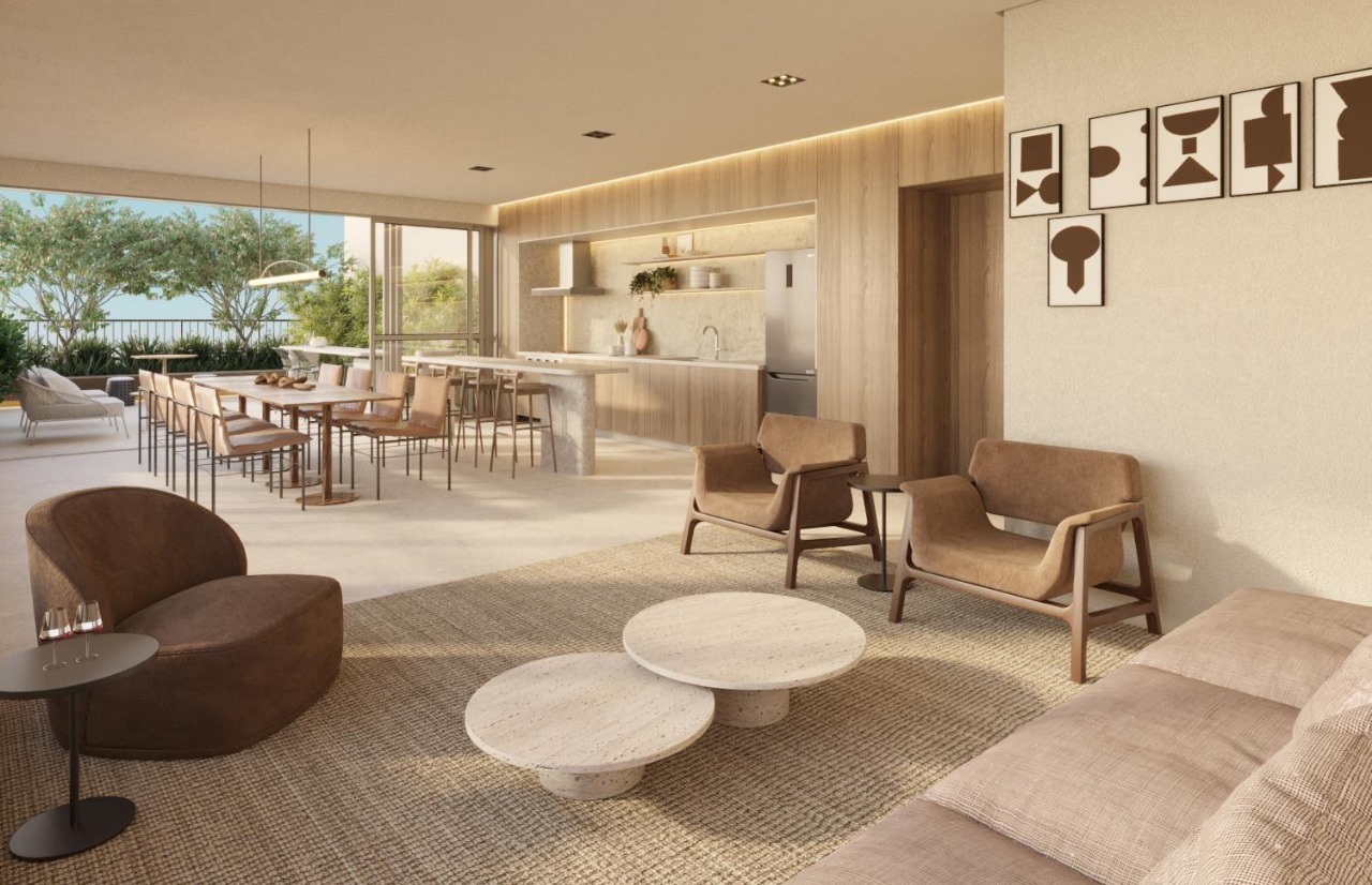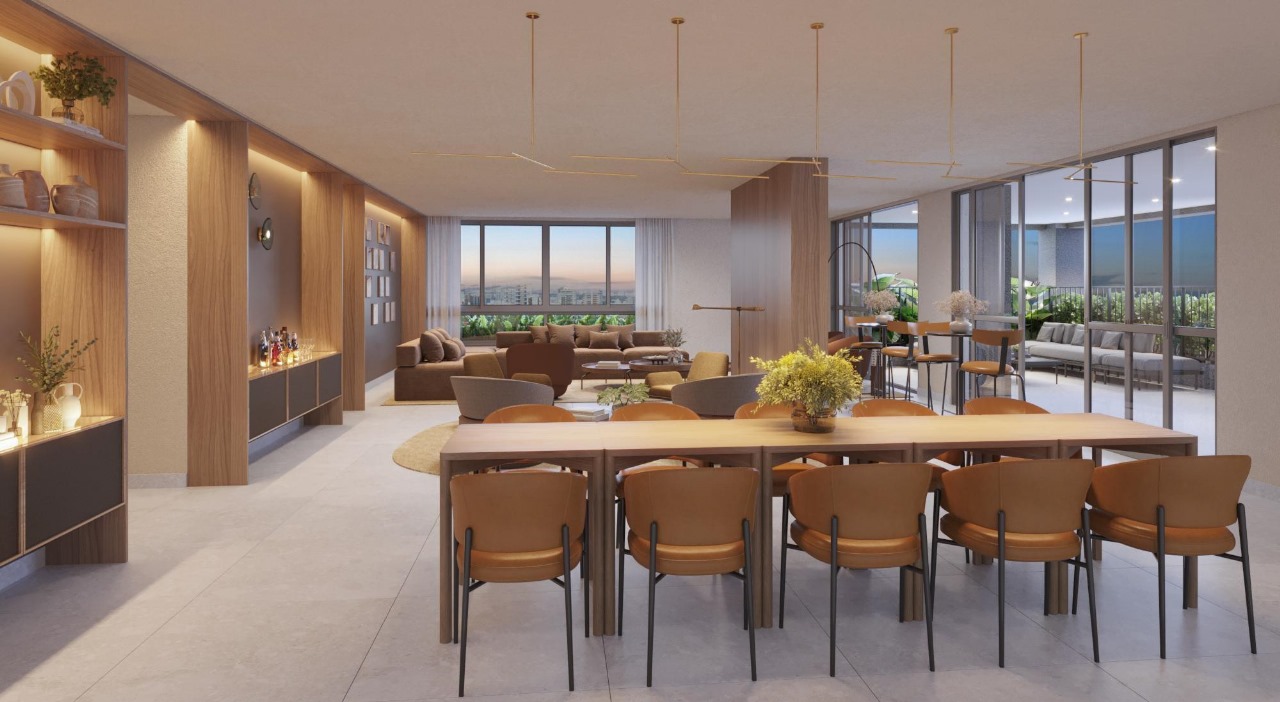 • Arquitetura contemporânea com acabamentos de alto padrão e ambientes iluminados naturalmente.